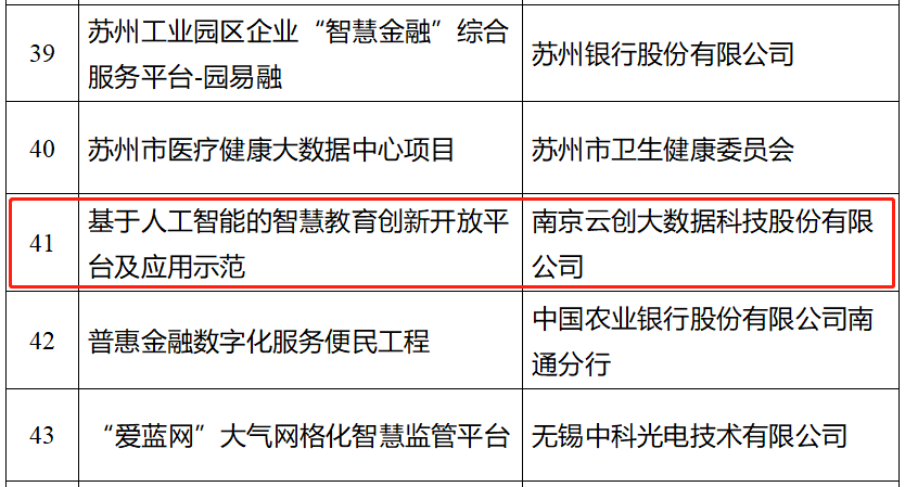1月25日,江苏省工业和信息化厅对2020年智慧江苏重点工程名单进行了公示,凭借深厚的技术积淀与创新的探索实践,云创大数据“基于人工智能的智慧教育创新开放平台及应用示范”入围公示名单。